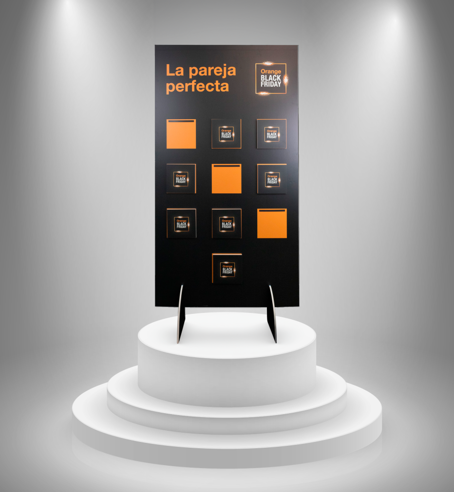 Orange, la famosa marca de telecomunicaciones, a través de su departamento de marketing, vuelve a confiar una vez más en Comunicación Gráfica Alborada para llevar a cabo una campaña promocional PLV con motivo de la celebración del periodo promocional de venta del Black Friday.