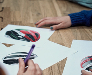 El primer paso fue el diseño de los cascos, con un concepto creativo inspirador: ¿qué tienen en la cabeza las corredoras que les hace luchar por llegar a la meta? A su equipo, a sus patrocinadores y, por supuesto, visualizándose a ellas mismas como ganadoras.
