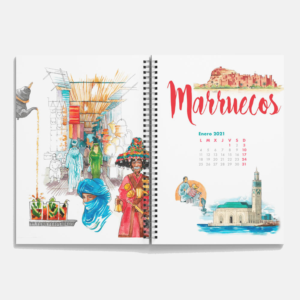 Una agenda convertida en un elemento de arte gracias a las ilustraciones integradas del gran viajero y artista visual Joaquín González Dorao.