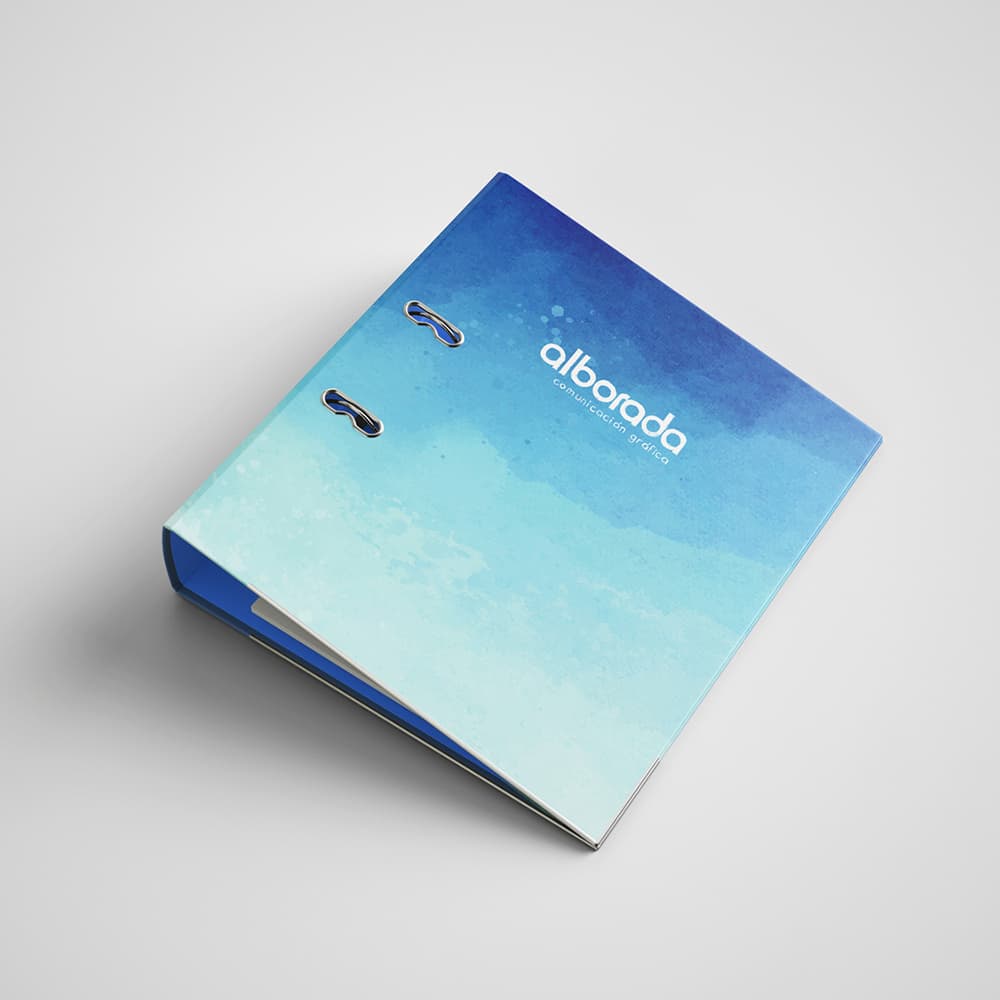 Archivadores de 27,5 x 31mm de tamaño de portada con anillas (2 ó 4) impresos a todo color con el exterior sobre cartón contracolado de 2mm y con acabado plastificado mate.