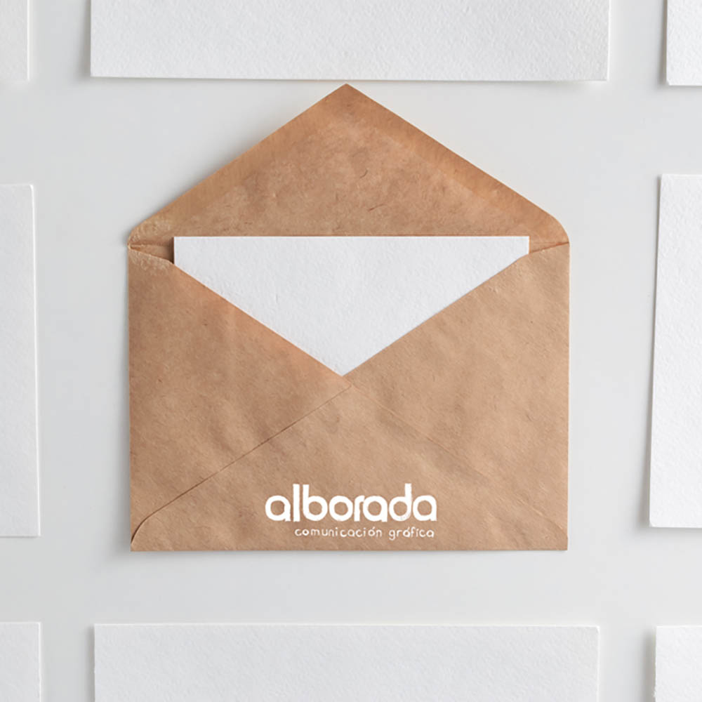 Sobre papel Kraft 150 gr. para regalo o para envío postal o mensajería con cierre autoadhesivo Impresión a todo color en zona exterior.