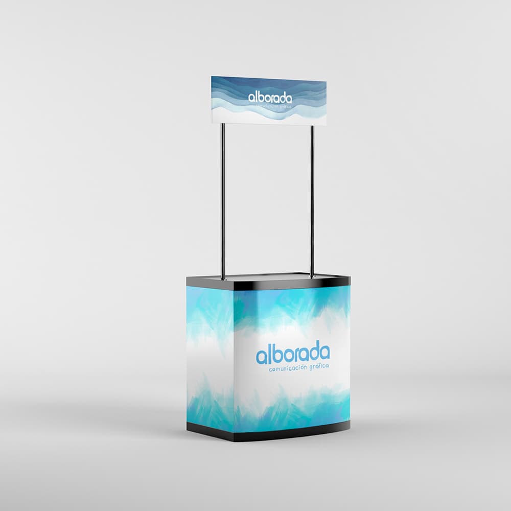 Mostrador promocional / stand portátil con impresión a todo color sobre una cara. Disponible en varios modelos y terminaciones.