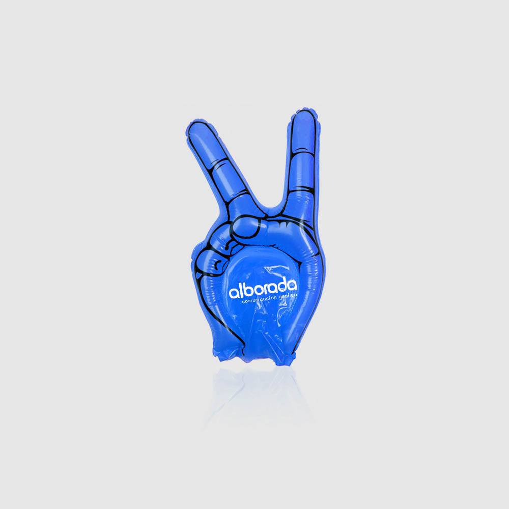 Divertida mano de animación victoria fabricada sobre resistente material LDPE de vivos colores.